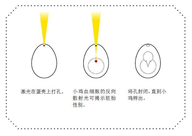 現(xiàn)在農(nóng)民可以保留會(huì)孵出母雞的雞蛋,并在雄性胚胎能感覺(jué)到痛苦之前就處理掉會(huì)孵出公雞的雞蛋.