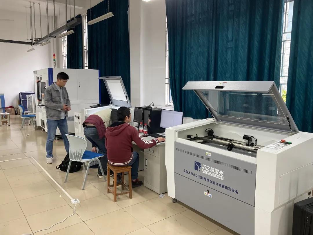 3月25晚,華之尊工程師挑燈夜戰至凌晨兩點。在現場對設備進行最后的調試。晚上11點,同濟大學工程實踐中心的領導還在巡視各個賽場,對于我們華之尊的工程師現場的表現和華之尊的設備給予高度的肯定,同時也對設備在大賽中表現也充滿了期待。國賽利器~高品質的華之尊激光助力選手們優異成績的取得!為大賽保駕護航。