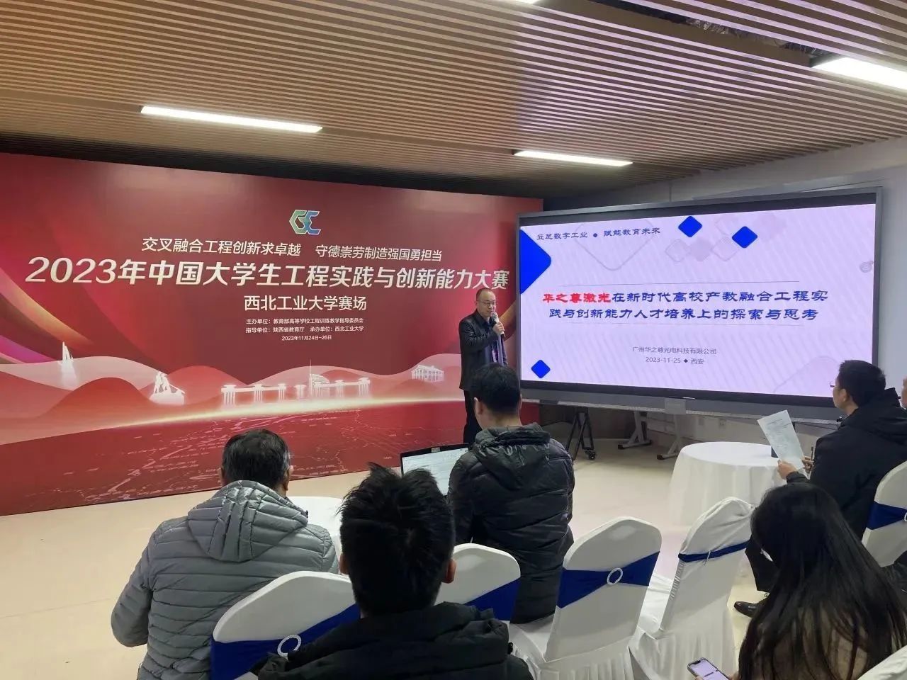 廣州華之尊光電科技有限公司作為2023年中國大學生工程實踐與創新能力大賽激光加工設備服務商及激光技術支持單位參加了此次大賽。在大賽期間,廣州華之尊光電科技有限公司總經理秦斌在“高校工程實踐產教融合新人才培養”研討會中以《