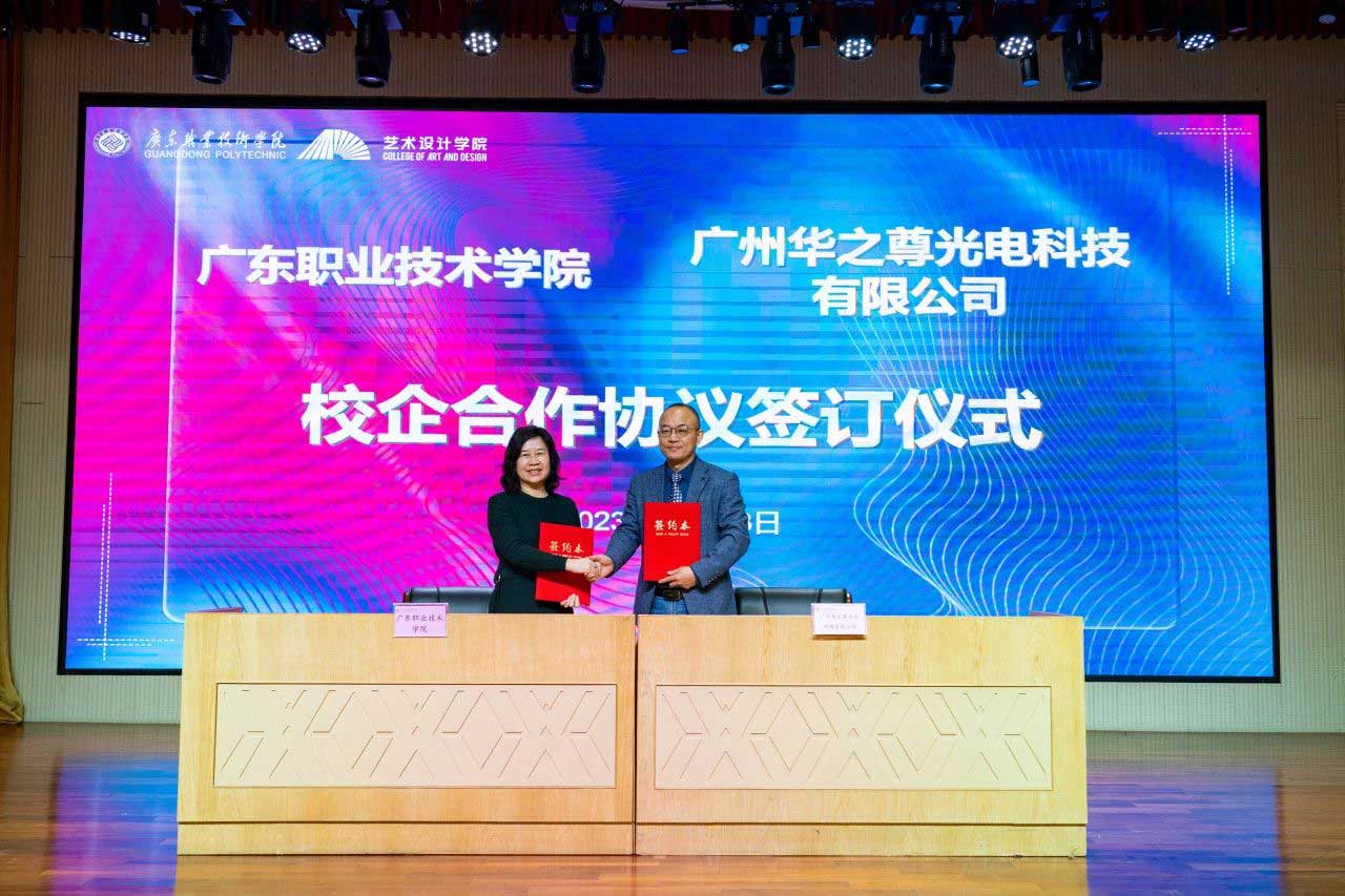 2023年12月28日,廣州華之尊光電科技有限公司與廣東職業技術學院聯合共建的激光科技藝術創新協同研發中心揭牌儀式在廣東職業技術學院隆重舉行。