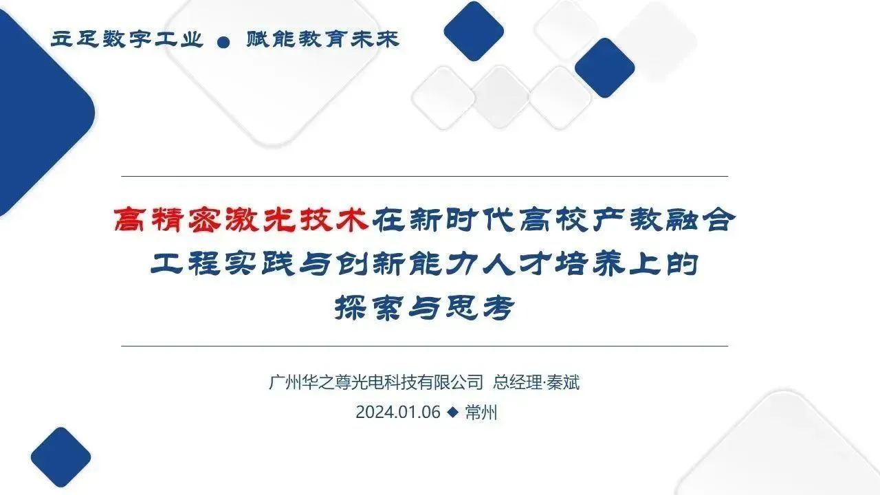 廣州華之尊光電科技有限公司總經(jīng)理秦斌在會議現(xiàn)場以《高精密激光技術(shù)在新時代高校產(chǎn)教融合工程實踐與創(chuàng)新能力人才培養(yǎng)上的探索與思考》為題,作了會議報告。