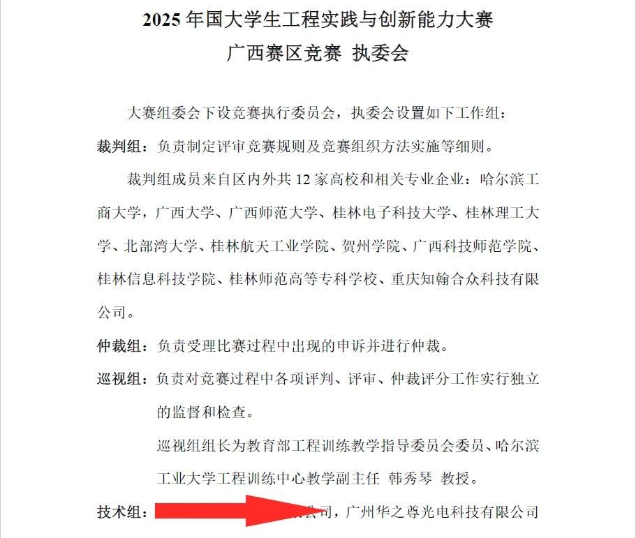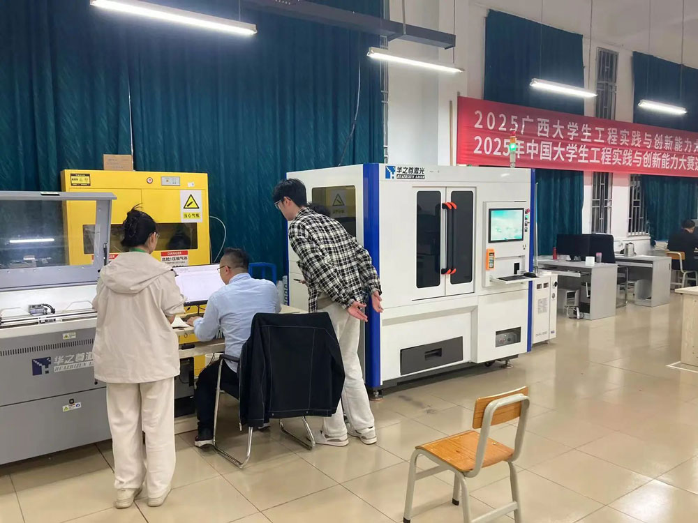 華之尊激光作為中國大學生工程實踐與創新能力大賽官方指定激光加工設備服務商及激光技術支持單位,2019年起,連續多年為國賽、省賽(區賽)提供激光設備及技術支持。2025年,華之尊激光再次受邀參加廣西賽區大賽,作為本次唯一激光設備及激光技術支持單位,為新能源車賽道、“智能+”賽道的精密零部件加工等環節提供核心設備保障,為參賽團隊提供強大的技術支撐。