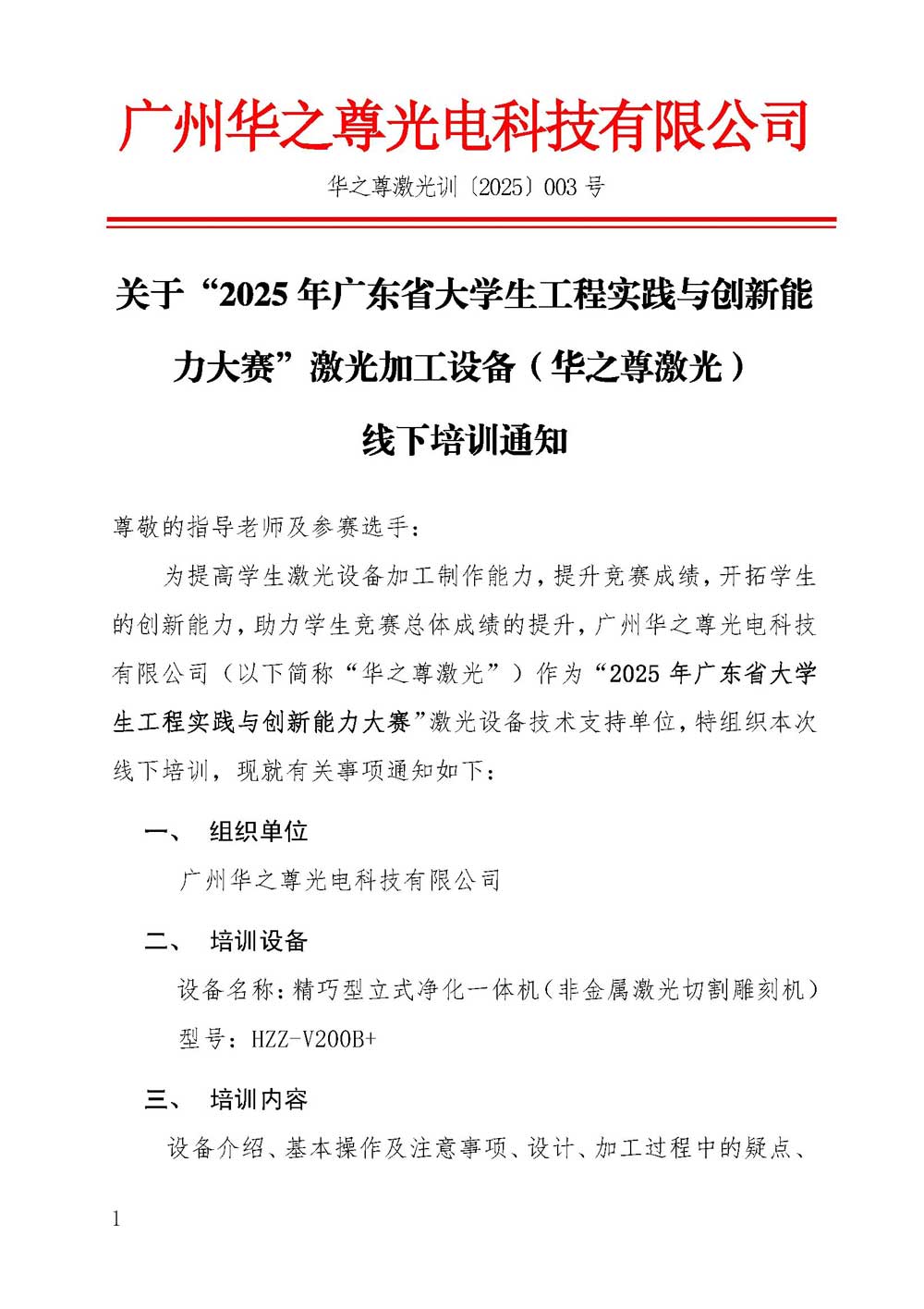 為了進一步拓寬學生的知識視野,提升他們在競賽中實際操作能力,華之尊激光不僅積極邀約學生上門培訓,還為學生量身定制了一套系統的培訓課程。課程涵蓋了設備的特點、加工技巧及競賽案例分析,拿分技巧講解等多個方面,旨在讓學生們在短時間內熟練掌握設備操作及在競賽中如何獲取高分。